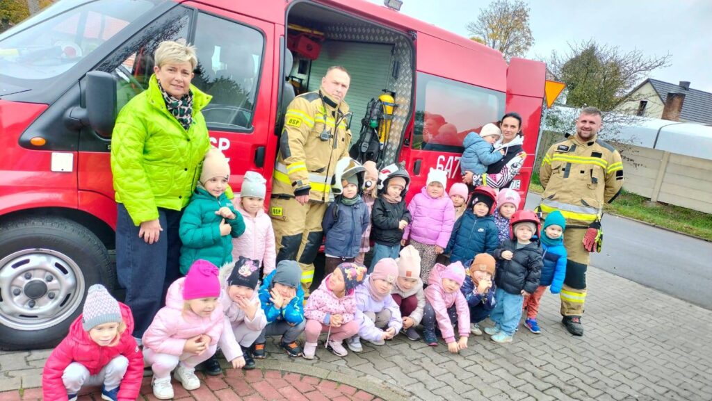 Dzisiaj w naszym przedszkolu odbył się próbny alarm przeciwpożarowy. Punktualnie o godzinie 10:00 rozległ się dźwięk alarmowy. Wszystkie dzieci wraz z nauczycielkami i pracownikami szybko i spokojnie opuściły sale, kierując się do wyznaczonego miejsca zbiórki na placu przedszkolnym. Ewakuacja przebiegła bardzo sprawnie – przedszkolaki świetnie poradziły sobie z zadaniem i wykazały się doskonałą znajomością zasad bezpieczeństwa. Po zakończeniu alarmu czekała na dzieci niezwykła niespodzianka – odwiedzili nas strażacy z Ochotniczej Straży Pożarnej w Buczu. Podczas spotkania opowiedzieli przedszkolakom o swojej trudnej i odpowiedzialnej pracy, pokazali sprzęt, którego używają podczas akcji ratunkowych, oraz przypomnieli zasady bezpiecznego zachowania w sytuacjach zagrożeni Dzieci miały także okazję zobaczyć z bliska wóz strażacki – mogły zajrzeć do środka, obejrzeć węże, hełmy i inne narzędzia strażackie. Największe emocje wzbudziła możliwość rozmowy przez krótkofalówki. Spotkanie zakończyło się wspólnym zdjęciem i serdecznymi podziękowaniami dla naszych dzielnych gości. Dzieci dowiedziały się, jak ważna jest praca strażaka i że należy zawsze zachować spokój w sytuacjach zagrożenia. To wydarzenie było nie tylko ciekawe, ale i bardzo pouczające – pomogło najmłodszym zrozumieć, jak dbać o bezpieczeństwo swoje i innych. Serdecznie dziękujemy strażakom Panu Radkowi i Panu Waldkowi za odwiedzenie naszego przedszkola, przeprowadzenie próbnego alarmu przeciwpożarowego oraz ciekawą i pouczającą rozmowę o ich odpowiedzialnej pracy. Wasza postawa, odwaga i poświęcenie są dla nas wszystkich ogromnym przykładem. Dziękujemy za poświęcony czas, życzliwość i uśmiech, z jakim podeszliście do naszych najmłodszych.