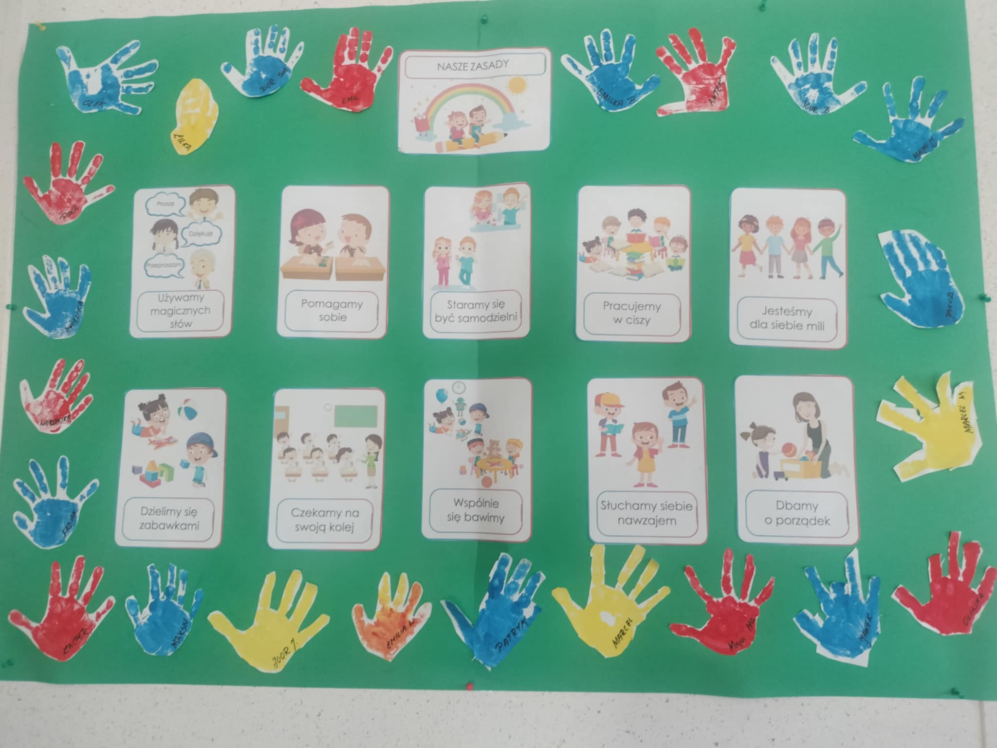 ,,Regulamin zaakceptowany – dłonie odbite” Nasze przedszkolaki poznały i utrwaliły zasady obowiązujące w grupie. Po wspólnie rozmowie z radością zaakceptowały regulamin, a na pamiątkę złożyły symboliczne podpisy – barwne odciski swoich dłoni. Od teraz każdy dzień w przedszkolu będzie jeszcze …