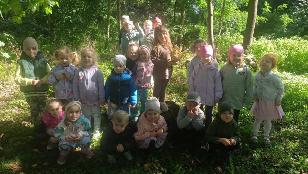Dzieci uważnie obserwowały przyrodę, a dzięki temu szybko znalazły oznaki jesieni – kolorowe liście, kasztany, żołędzie, jarzębinę a nawet orzechy. Pobyt na świeżym powietrzu daje wiele korzyści, jedną z ważniejszych jest fakt, że dzieci uczą się obserwować, zadawać pytania oraz wyciągać wnioski.