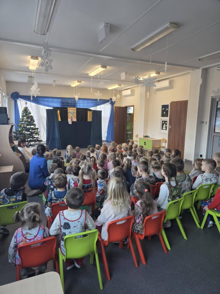 Dnia 7 stycznia 2026 roku dzieci z naszego przedszkola uczestniczyły w wyjątkowym spotkaniu z teatrem. Przedszkolaki miały okazję obejrzeć przedstawienie pt. „Papuga króla Heroda”, zaprezentowane przez aktorów Teatru Lalek Wszędobylskich z Poznania.
